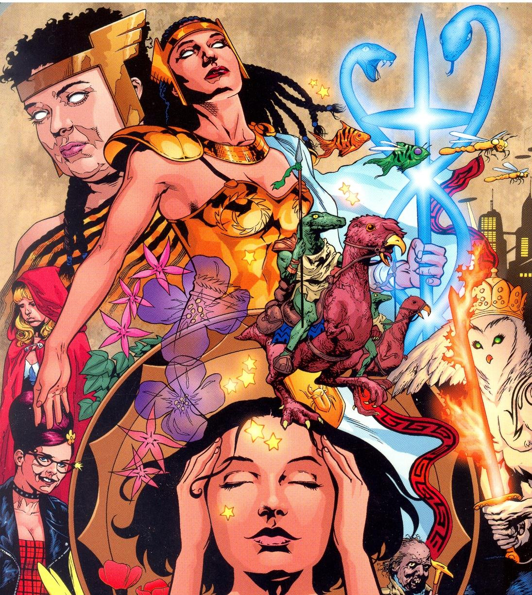 Promethea (Book 2) by Alan Moore, J. H. Williams III, Mick Gray, and Jose Villarrubia (Wildstorm) This collection follows Sophie Bangs, the latest in a long line of Prometheas, on a winding journey of discovery as she continues to learn the secrets of the Immateria and the nature of her enhanced self herself. Her transcendental adventure brings young Sophie to realms of magic and wonder that none have experienced before. Collecting issues #7-12, this book contains such fan-favorite stories as "Rocks and Hard Places," where Sophie learns about the Promethea named Bill, and "Sex, Stars, and Serpents," where Sophie learns first-hand the nature of Tantric sex magick, from a skid row denizen named Jack Faust (nothing is explicitly shown but boobies), with a discussion of the theory and practice of magical symbolism and chakras ... which leads to a priceless last-page joke.